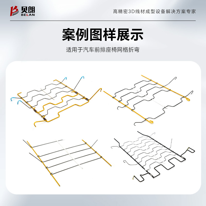 貝朗自動化網格機編制部分可視頻監控;整機可配5-7個自動送線架;整機使用鈑金包裝,設有3道安全卷簾門,可遙控操作;可同時折彎成型鋼絲、塑包鋼絲,編織成網格。